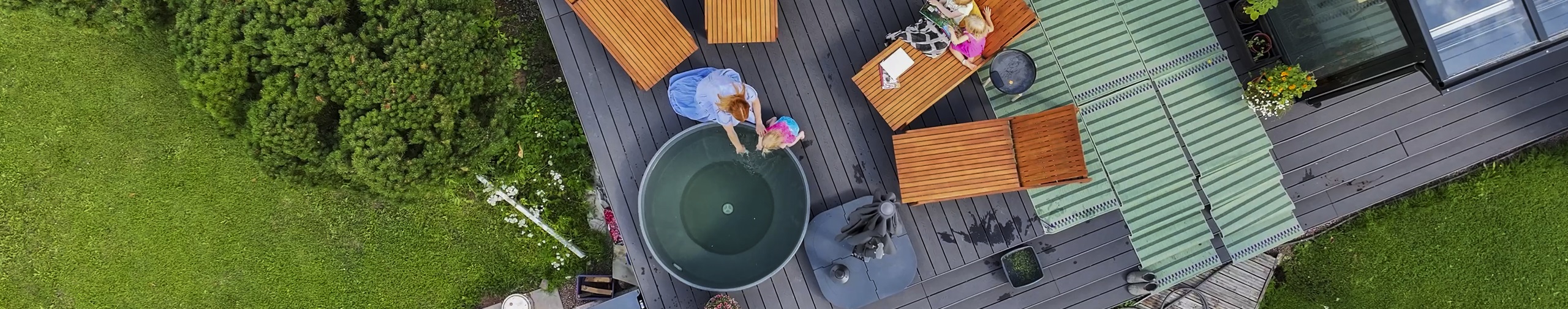 Als Titta und Thomas, Elternpaar einer Familie mit Kindern aus der Stadt Kotka, die Renovierung der Terrasse ihres Einfamilienhauses planten, wussten sie von Anfang an, dass sie auf ihrer neuen Terrasse ein Badefass haben wollten, in dem die ganze Familie in der Ruhe des eigenen Gartens, umgeben von der Natur, warme Bademomente genießen kann. Die fünfköpfige Familie entschied sich für ein Badefass der Größe M von Kirami, das nun bereits das ganze Jahr über in Betrieb gewesen ist!