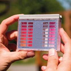 Zunächst ist sicherzustellen, dass der pH-Wert im Becken stimmt, damit die Reinigungschemikalien bestmöglich wirken können, die Beckenteile nicht korrodieren und das Baden an sich angenehm ist. Am einfachsten messen Sie den pH-Wert mit Teststreifen. Die Lösung wird in das Becken gegossen und die Farbe der Lösung mit den Lackfarben auf der Dose verglichen. Eine genauere pH-Wert - Messung kann mit einem Beckentester vorgenommen werden, wobei neben dem pH-Wert auch die Sauerstoffsättigung und die Menge des freien Chlors kontrolliert werden kann. In den Tester werden die Tabletten in die jeweiligen Spalten eingelegt und mit Wasser aus dem Badefass übergossen. Die Tabletten verfärben das Wasser, wenn sie sich aufläsen und auf der Skala des Testers wird sichtbar, welcher pH-Wert welcher Farbe entspricht. Ein wünschenswerter pH-Wert liegt zwischen 7,0 - 7,4. Liegt der pH-Wert unter dem gewünschten Niveau, vermischen Sie die in der Instruktion angeführte Menge pH+ - Granulat zunächst in einem separaten Eimer mit aus dem Badefass entnommenen Wasser und gießen danach die Lösung zurück ins Badefass.