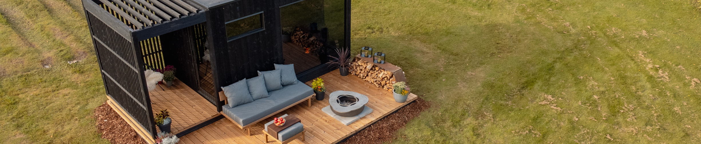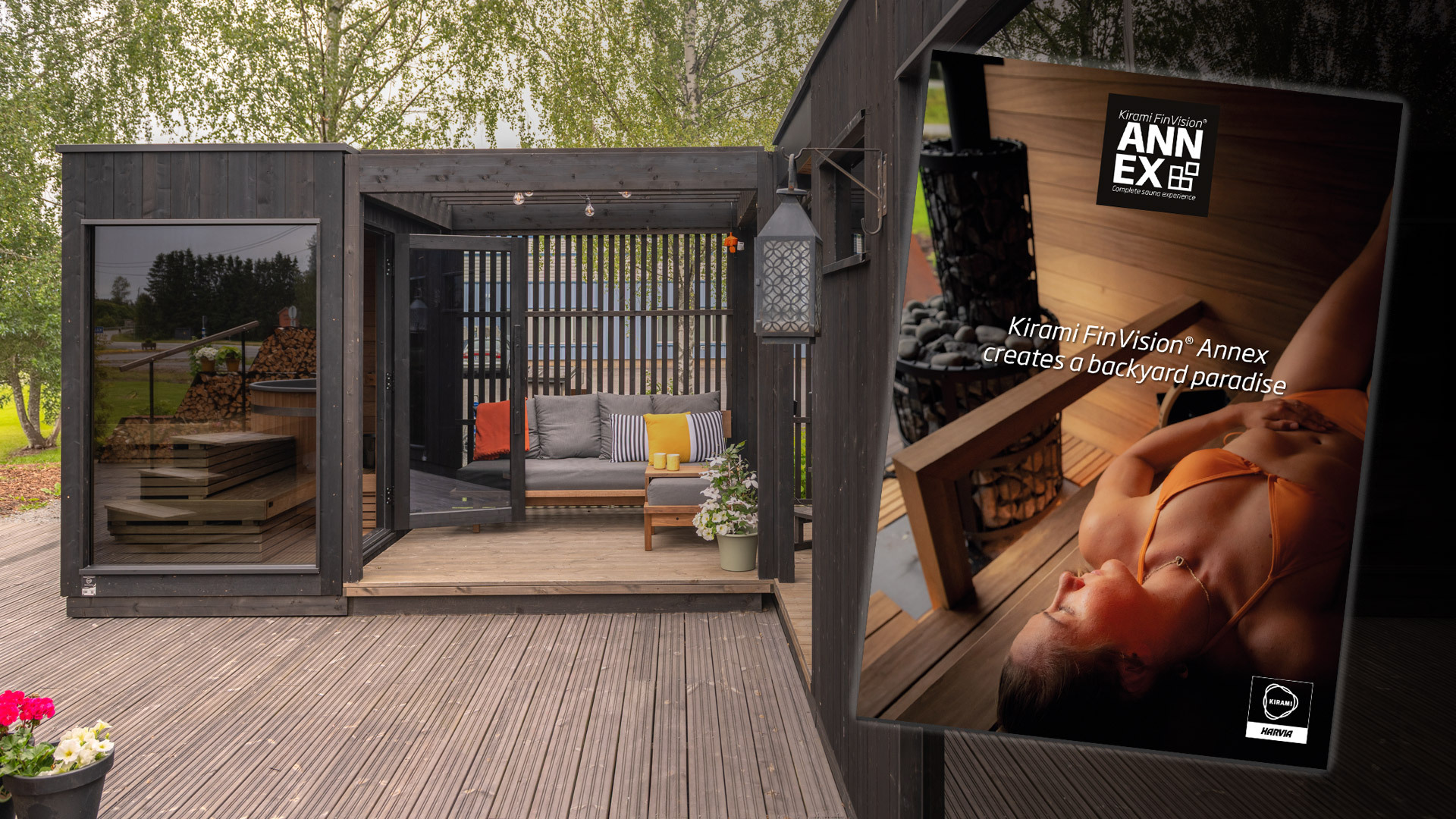 Mit den Kirami FinVision® Annex -Modulen können Sie sich ein Gartenparadies ganz nach Ihrem Geschmack gestalten - mit oder ohne Sauna.