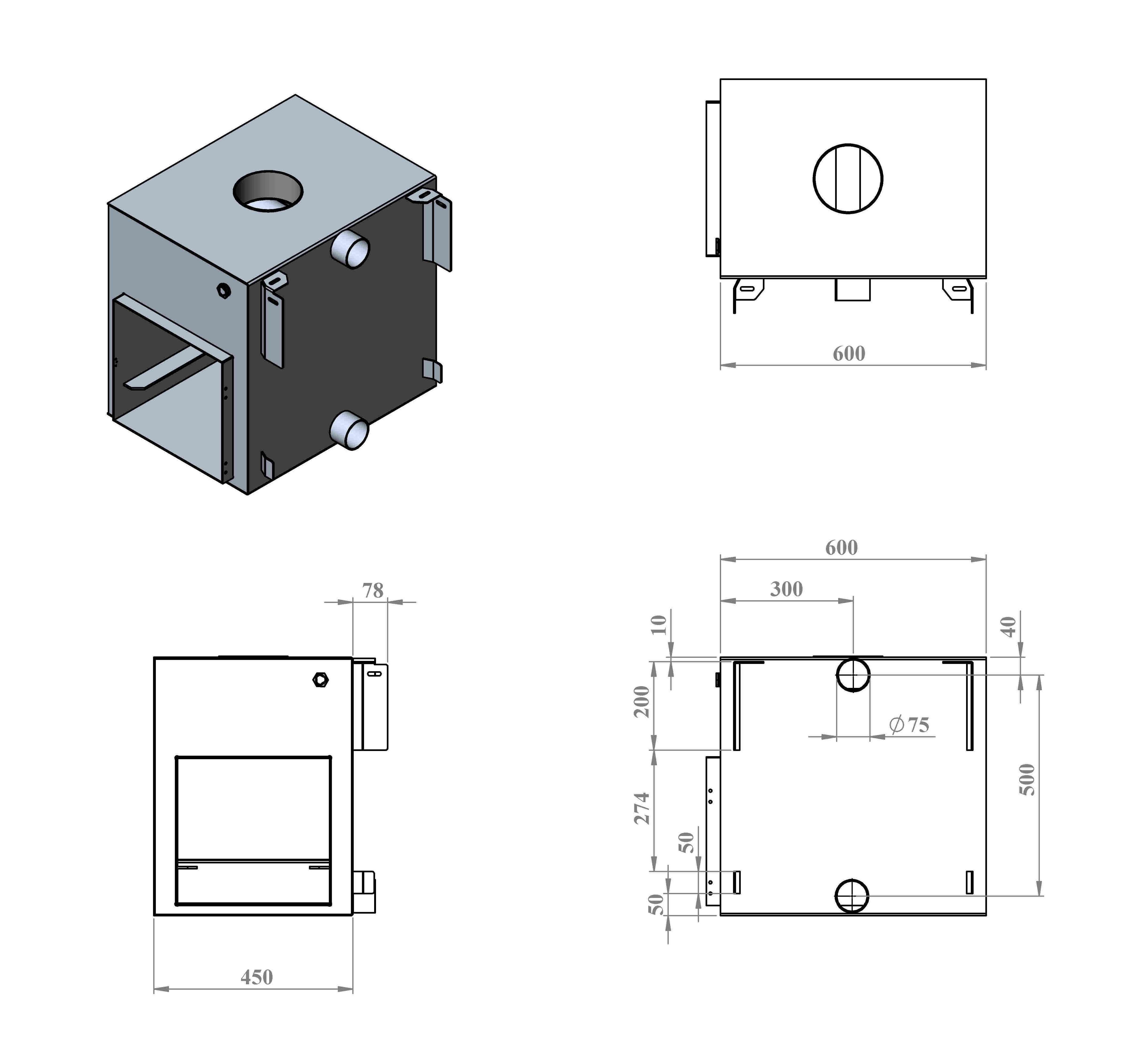 Cube ist der konventionelle und leistungsstarke externe 35 kW Ofen für Hot Tubs von Kirami. Der Cube-Ofen ist viereckig gestaltet und kann auch größere Hot Tubs effizient beheizen. Das Cube-Basismodell wird rechts beheizt, es ist aber auch ein von links beheizbares Modell erhältlich.